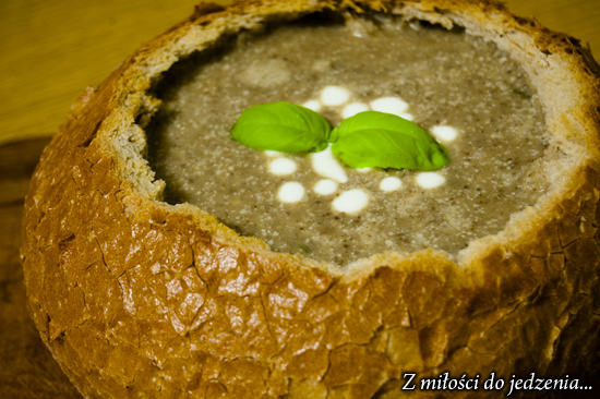 Dziwna sprawa: nie lubię grzybów, ale uwielbiam wszelkie sosy i zupy grzybowe. Dlatego też, jeśli chodzi o zupy, najbardziej smakują mi grzybowe kremy. Fajnym sposobem na podanie takiego kremu jest wlanie go do chleba. Dzięki temu wygląda nie tylko smakowicie, ale i ciekawie, a przygotowanie takiego dania wcale nie jest trudne.