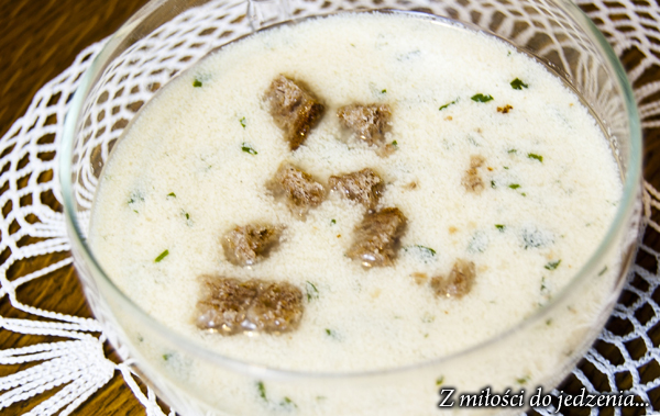 Przed podaniem zupę posypujemy posiekaną pietruszką i grzankami.