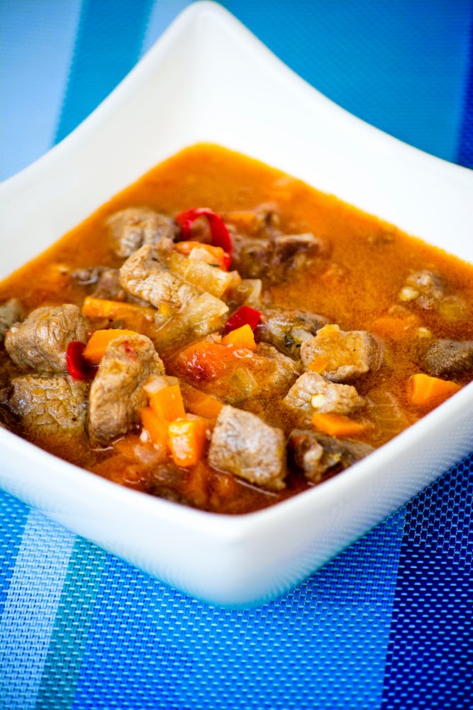 Mój plan na nadchodzące miesiące: wziąć udział w warsztatach kulinarnych z dziczyzny. Bo dziczyzna niełatwym mięsem jest w przygotowaniu. Z dziczyzną nie ma przebacz: łatwo ją wysuszyć, zrobić twardą, jak podeszwa lub gumową. Polędwicę z dzika schrzaniłam koncertowo już trzy razy. Auuuuu… takie dobre mięso. A jak się za nie zabrałam, to potem nawet pies go nie chciał ruszyć. No nie ma się czym chwalić. Na szczęście tego samego dnia udało mi się przygotować smaczny gulasz. Na pocieszenie i otarcie łez. Oczywiście gulasz z łopatki, a nie z polędwicy. Choć można użyć również karkówki, ale ja jej akurat nie miałam. Właściwie taki gulasz można też przygotować z wołowiny, pomijając jedynie etap marynowania mięsa.