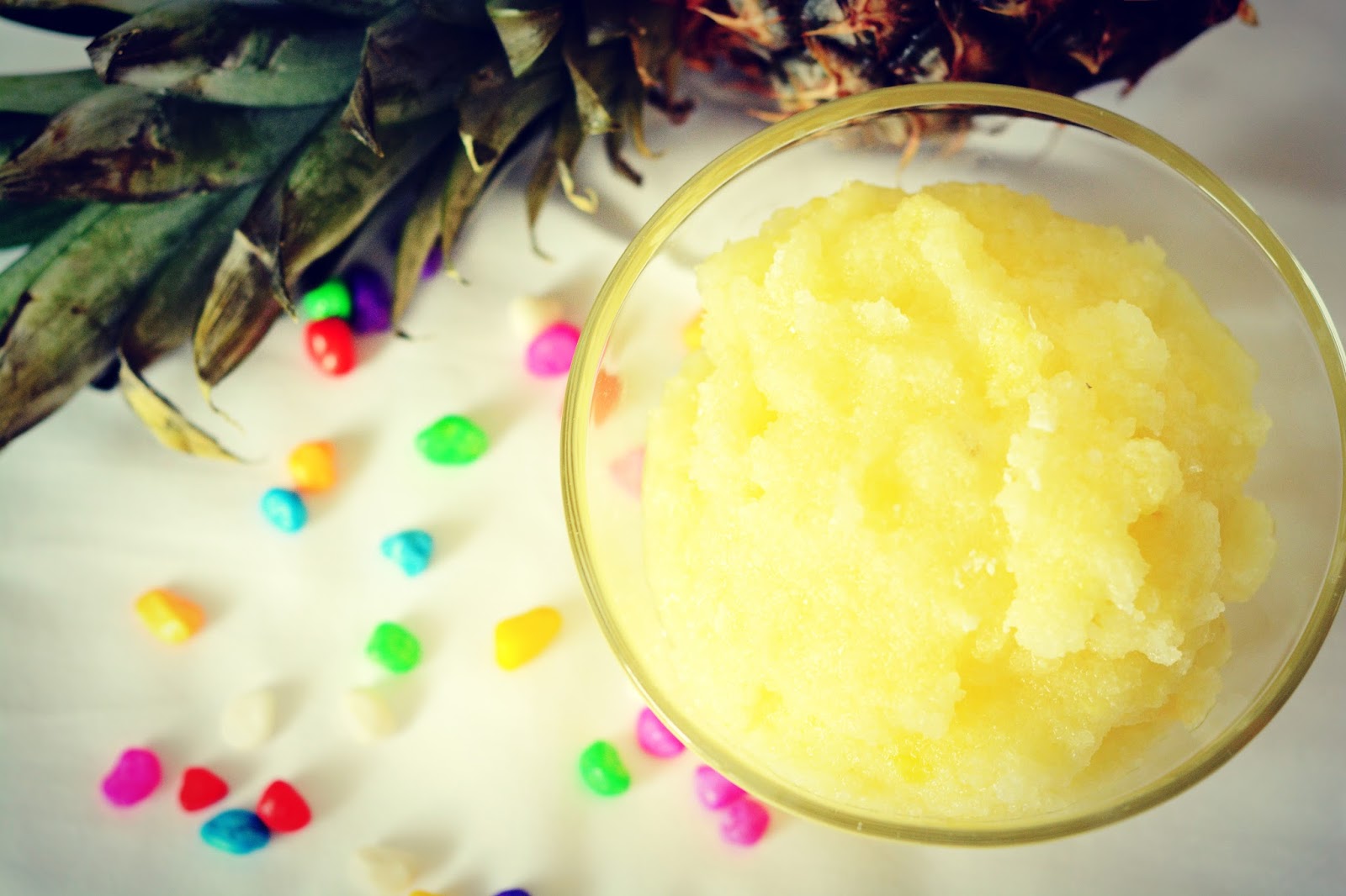 Do niedawna moim wieloletnim ulubieńcem był peeling kawowy (czy jest ktoś, kto jeszcze o nim nie słyszał?). Natomiast od jakiegoś czasu stosuję właśnie peeling cukrowy, który ma świetne działanie: fantastycznie wygładza skórę i świetnie ją nawilża. Sprawia, że staje się gładka i miękka. Jak ulepszyć coś, co jest prawie doskonałe? Można sprawić, aby pachniało jak urlop w tropikach, co mnie samej kojarzy się z pina coladą i to nie tylko w postaci drinków, ale również z lodami pina colada czy bezalkoholowym koktajlem pina colada. Wystarczy połączyć świeży ananas z olejem kokosowym.