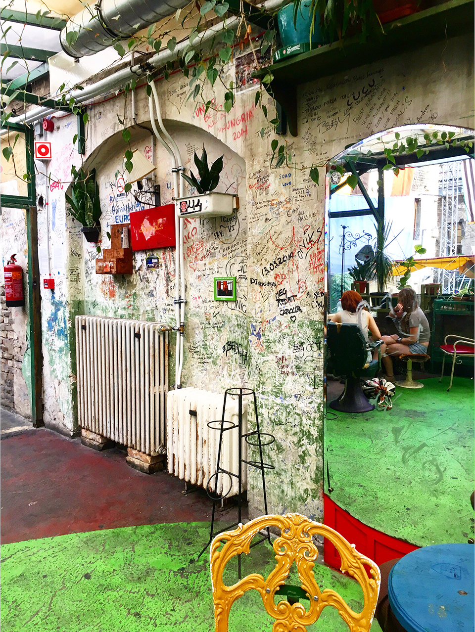 Generalnie najwięcej tego typu pubów znajdziecie w żydowskiej VII dzielnicy – w zrujnowanych, opuszczonych kamienicach. Podobno zaczęły powstawać niewiele – ponad 10 lat temu. Pierwszy, w którym byłam, od razu skojarzył mi się ze squatem. Z zewnątrz ruin pubs w najlepszym wypadku wyglądają niepozornie. Przeważnie, dla człowieka nie zaznajomionego z tematem – odstraszająco. Prędzej bylibyście w stanie przyjąć, że to miejsce, w którym łatwiej można dostać w mordę, niż spędzić fajnie czas. I dobrze. Dla mnie ten wygląd to ogromna zaleta. Niestety zdążyłam odwiedzić tylko trzy tego typu bary, ale tak mi się podoba ich klimat, że do Budapesztu wrócę, może niebawem, tylko po to, aby zobaczyć wszystkie, które są w tym mieście.